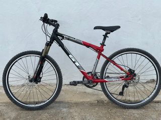 Bicicleta GT de montaña en color rojo. Ideal para paseos y senderos. - Cuadro de aluminio. - Suspensión delantera. - Frenos de disco. Le falta una puesta a punto. Escucho ofertas por ella