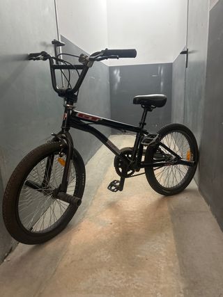 Bicicleta GT Mach One en color negro. - Cuadro de acero. - Ruedas de 20 pulgadas. - Manillar de BMX. Un poco sucia y algunas partes con un poco de oxido, descuidada por no usar. No esta pinchada, se puede usar perfectamente.