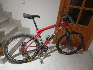 Bicicleta de montaña GT Zaskar con ruedas de 29 pulgadas. Ideal para iniciarse en senderos y rutas. - Cuadro de aluminio ligero. - Horquilla de suspensión delantera rockshox. - Frenos de disco. Avid. - Cambio Shimano xt. - cubiertas specialized grond control nuevas. - Monoplato ovalada-30. - 11v. - Tija y manillar ritchey. Tiene poco uso y vendo por cambio a bici de carretera.