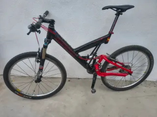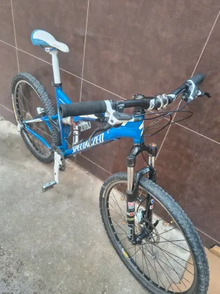 Bicicleta Specialized Stumpjumper FSR Comp 26 Cuadro aluminio talla m/l Le falta la cadena y desviador platos Todo lo demás está , sería poner cables y hacer mantenimiento. Pastillas traseras nuevas , puños nuevos Cámara delantera pinchada Para alguien manitas que entienda de bicis y la quiera poner bien , cuadro en buen estado sin holguras ni fisuras, típicas marcas de uso ... No hago envíos para el que la compre que vea si estado y lo que le falta en persona... Bici bicicleta Mtb carretera btt shimano Xtr xt klein scott Giant Gt cannondale Specilized scott Marín titanio yeti