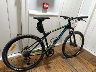 Bicicleta de montaña GT Avalanche con ruedas de 27.5 pulgadas. Talla M. - Cuadro de aluminio. - Suspensión delantera. - Frenos de disco. - Cambio Shimano. - 3 platos y 9 piñones. - bolsa bajo sillín con herramientas y cámara de repuesto incluido. - Bomba de aire manual incluida.