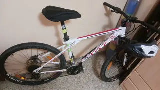 Se vende bicicleta GT Avalanche 3.0 en excelente estado general, lista para rodar. Ideal para quienes buscan una bici resistente, ligera y versátil, perfecta para montaña o ciudad. Características: • Cuadro: Aluminio GT Triple Triangle, talla mediana. • Suspensión delantera: SR Suntour con bloqueo. • Velocidades: 24 (3x8), transmisión Shimano. • Frenos: V-Brake potentes y de fácil mantenimiento. • Ruedas: 26” con aros 6061-T6 (599x19) de aluminio. • Pedales: Automáticos FPD, compatibles con calas SPD. • Color: Negro con detalles en blanco y azul. • Extras: Porta botellas incluido.