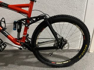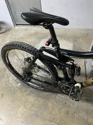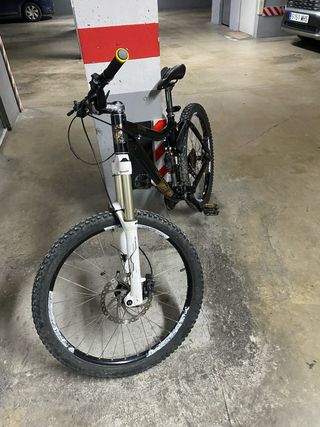 - Cuadro de aluminio. - Suspensión delantera RockShox Pike y amortiguador central rockshox. - Ruedas Maxxis minion DHF y DHR 27,5 x 2,60 - Llanta trasera un poco descentrada - El cambio hay que terminar de ajustarlo porque no he tenido tiempo - Frenos shimano zee 4 pistones delantero y trasero - Potencia corta - Tija telescopica por cable - Discos 203mm y 180mm - Marcas de uso en el cuadro y horquilla delantera (parte de arriba nada grave) solo hablar gente interesada por favor.