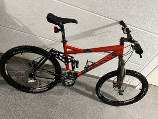 Bicicleta Kona Stinky con doble suspensión, ideal terrenos difíciles. Su diseño robusto y componentes de calidad la hacen una opción fiable. Creo que es una l.mido 180 y me queda como un guante . Una bicicleta muy divertida de manejar Lleva tiempo parada y no le vendría mal una puesta a punto. De regalo algunas zarrias que vienen bien .Bomba para inchar la horquilla.bomba de aire, alguna luz y aceite . - Cuadro de aluminio. - Amortiguador trasero. - Horquilla delantera. - Frenos de disco.