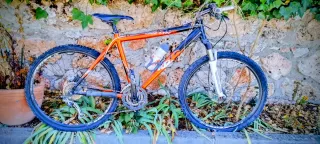Bicicleta de montaña Megamo con un diseño deportivo en colores negro y naranja, esta muerta de risa en el trastero, se ha usado dos veces. - Cuadro de aluminio. - Ruedas de 26 pulgadas. - Frenos de disco. - Suspensión delantera.