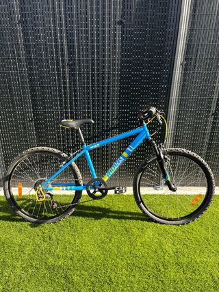 Bicicleta Rockrider de 24 pulgadas, ideal para jóvenes ciclistas. - Cuadro de aluminio ligero. - Suspensión delantera. - Frenos V-brake.