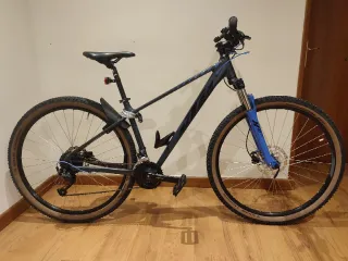 Bicicleta de montaña con un diseño moderno y deportivo, se ha usado dos veces y esta muerta de risa en el trastero. - Cuadro de aluminio. - Frenos de disco. - Ruedas de 29 pulgadas.