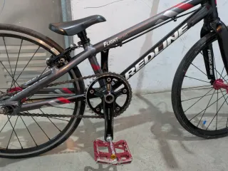 Bicicleta de BMX Redline modelo Flight Micro. Ruedas de 18". Modelo alto de gama, muy ligera, con cuadro de aluminio. Ideal para iniciarse en el bmx Race.