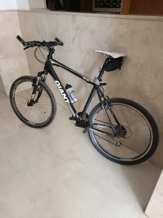 Bicicleta de montaña Giant en color negro. Ideal para disfrutar de rutas y senderos. - Cuadro de aluminio. - Suspensión delantera. - Frenos pastilla Talla L (si mides 1,75 a 1,90 perfecto) Se vende por mudanza a otro continente. Regalo 1 casco y 1 maillot talla L
