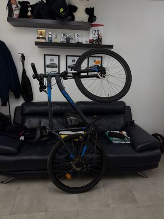 Bicicleta de montaña Rockrider ST 120. Puesta a punto hoy 2 de marzo, la he dejado nueva. Trae: Luz trasera, luz delantera, bloqueo de suspensión, sillín extra. Le he cambiado pastillas, engrasado todo bien, ajustado los frenos, neumatico delantero nuevo comprado hoy y cámara nueva. Un mínimo de oxido irrelevante para su funcionamiento. La bici tiene 3 rodadas. (era de mi padre) - Cuadro de aluminio. - Frenos de disco mecánico. - Ruedas de 27.5 pulgadas. 🔴PRECIO NEGOCIABLE.🔴