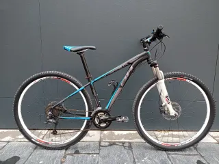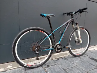Bicicleta de montaña BH peak, cuadro de aluminio talla S, ideal si mides entre 1.65 y 1.75. ruedas de veintinueve pulgadas con neumáticos specialized fast track de 2 pulgadas en muy buen estado. Frenos de disco hidráulicos Shimano delantero con disco de 180 mm y trasero con disco de 160 mm. Amortiguación delantera sr sound tour de 100 mm de recorrido con ajuste y bloqueo en el manillar. Transmisión shimano deore de tres por nueve, lo cual hacen un total de 27 velocidades. La bicicleta funciona perfectamente y no hay que hacerle ningún mantenimiento ni reparación.