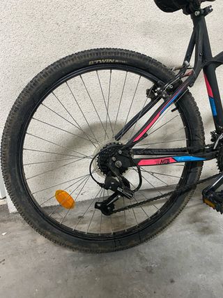 Bicicleta Btwin de montaña con ruedas de 28 pulgadas. Ideal para iniciarse en el ciclismo. - Cuadro de aluminio ligero. - Frenos V-Brake. - Suspensión delantera. - Cambio Shimano de 7 velocidades. - Sillín Btwin. - Pedales de resina.