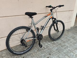 Vendo mi Decathlon Rockrider 5XC. Es un modelo clásico de hace unos 20 años, muy robusto y con cuadro de aluminio ligero. Estado: El cuadro está limpio y bien conservado. A reparar: Tiene las ruedas deshinchadas/pinchadas. Necesita cámaras nuevas para poder circular. Componentes: Cambios y frenos Shimano originales. Ubicación: Sólo Recogida en Gràcia (Barcelona). No hago envíos. Ideal para quien busque una bici económica para la ciudad o un proyecto de restauración. Nota: No tengo la llave para el candado, pero se puede quitar.
