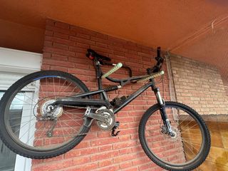 Bicicleta Giant con doble suspensión, ideal para terrenos variados. - Cuadro de aluminio. - Frenos de disco. - Ruedas de 26 pulgadas. La bicicleta esta en perfecto estado tiene suspension regulable el freno trasero es hidraulico shimano Se aceptan cambios
