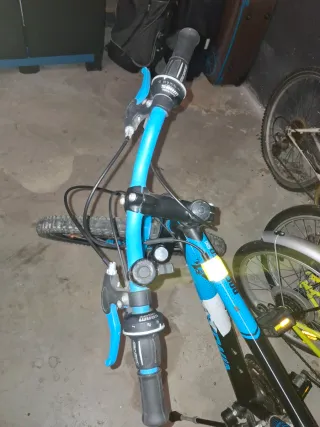 Bicicleta de montaña con un diseño deportivo y llamativo. Solo hay que hacerle una puesta a punto - Cuadro de aluminio en color azul y negro. - Ruedas todoterreno. - Suspensión delantera. - 8 piñones - 2 platos - cambio de marchas shimano - pedales aluminio Talla M
