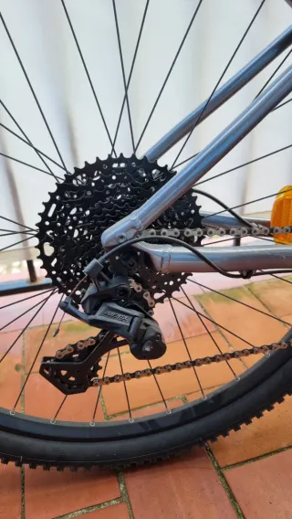 Modelo de alto rendimiento, en muy buen estado gracias a un mantenimiento regular y cuidadoso. Mantenimiento de las suspensiones realizado en un taller profesional. Bici sin usar desde septiembre 2024 y almacenada en el taller DK90 de Castelldefels. •Cuadro: META AM V3 650B TRAVEL 150MM (Talla L - 178cm-190cm) •Amortiguador: ROCKSHOX MONARCH RT3 •Horquilla: ROCKSHOX PIKE RC 160MM •Mandos: SRAM X7 1X10 SPD •Cambio: SRAM X9 10 SPD •Pedales: SHIMANO Dual EH500 (Híbridos) •Frenos: SRAM G2 RE (doble pistones) •Cassette: SRAM PG1020 11-36 T •Llantas: RIDE ALPHA 650B 32H (Tubeless) /27,5 •Tija: KIND SHOCK E30IS 125MM (telescópica)