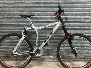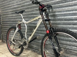 Bicicleta de descenso GT LTS-DH de aluminio. Año 1997 talla S, en estado muy bueno. Sin abolladuras ni ralladas importantes. Importada de Japón, adquirida en subasta. Mismo modelo en aluminio reforzado que usaron Nicolas Vouilloz y Mike King en mitad de temporada 1996 tras problemas de roturas en el modelo termoplástico STS-DH. - Cuadro de aluminio. - Sistema de suspensión LTS. - Horquilla KOWA DH first edition (modelo muy raro con mantenimiento recién hecho). - Ruedas de 26 pulgadas.