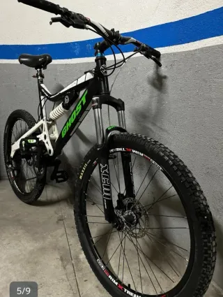 Bicicleta de montaña de la marca Ghost. Ideal para senderos y terrenos irregulares. - Cuadro de aluminio. - Suspensión delantera y trasera. - Frenos de disco.