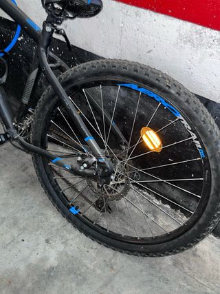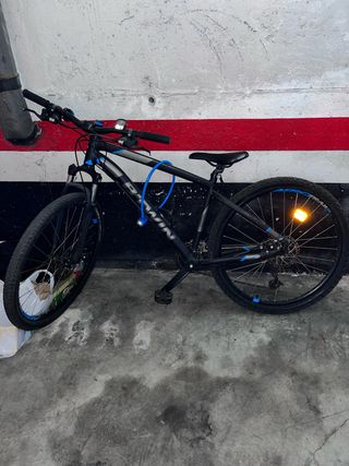 Bicicleta de montaña Rockrider ST 520 en color negro y azul. Talla M - Cuadro de aluminio. - Suspensión delantera. - Frenos de disco. - Ruedas de 27.5 pulgadas. En buenas condiciones, nunca a tenido golpes ni nada parecido,solo tiene una cámara pinchada (vale 10€) la vendo por no tenerla ahí sin usar, gente interesada no mareantes... Se pueden mandar fotos o videos por WhatsApp. Se entrega limpia y en condiciones presentables. Algo negociable