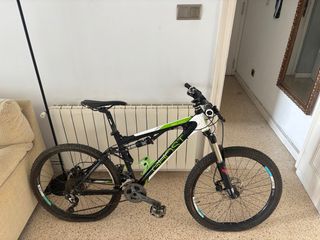Bicicleta Btwin de montaña con doble suspensión y ruedas de 27.5 pulgadas. - Cuadro de aluminio. - Frenos de disco. - Cambio Shimano. Algunas marcas de uso, pero no afectan en nada al rendimiento y no son tampoco muy vistosas, son solo pequeños detalles. Podéis venir a verla sin compromiso.