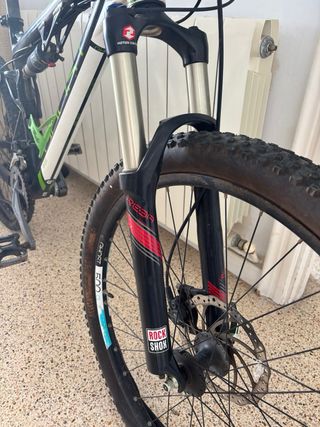 Precio no negociable. Nueva costó unos 1200€. - Cuadro de aluminio. - Llantas de carbono 29 Progress (cambiadas, las originales eran de aluminio) - Manillar grande (cambiado, el original era más corto ) - Neumáticos de montaña 29 con taco gordo Maxxis - Suspensión delantera Rockshox - Regulador suspensión carretera y montaña. - Frenos de disco Shimano - Cambiador marchas Shimano Deore - Bolsas de sillín incluida. - Cámara de aire de repuesto. Solo hay que cambiar pastillas de freno, se han endurecido de no usarla.