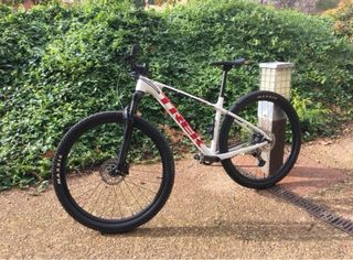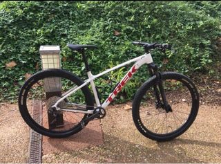Bicicleta de montaña Trek Xcaliber 8 en color blanco. - Cuadro de aluminio. - Ruedas de 29 pulgadas. - Frenos de disco hidráulicos. - Transmisión Shimano. - Ruedas tubelizadas. - Poco uso, muy buen estado.