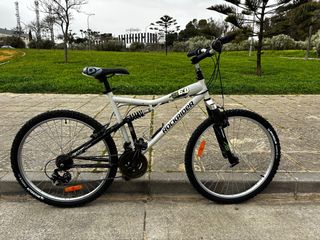 Bicicleta de montaña Rockrider 6.0 Full Suspension con ruedas de 26 pulgadas. Cuadro de aluminio Suspensiones en buen estado Cubiertas NUEVAS Michelin Country Style Frenos V brake puestos a punto Cambio Shimano tourney 21 velocidades (3-7) Cadena Nueva Mejor ver y probar Precio negociable