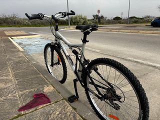 Se vende bicicleta de montaña (MTB), ideal para jóvenes o adultos de talla pequeña. Perfecta para iniciarse en caminos o para moverse por ciudad. Características: - Cuadro en color Rojo y Gris. - Equipada con Suspensión delantera para mayor comodidad. - Cambio trasero de 6 velocidades. Estado Importante: La bicicleta está en condiciones de uso, pero necesita una revisión de mantenimiento básica: las ruedas están desinfladas y podría requerir un ajuste de frenos/cambios. I deal para: Quien quiera una bici económica y esté dispuesto a hacerle una pequeña puesta a punto. 🏷️ PRECIO: 40€ (negociable) ¡CHOLLO POR DESALOJO! Precio fijo