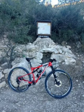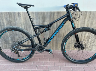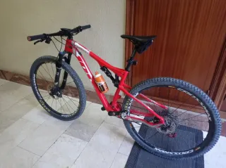 Bicicleta de montaña con doble suspensión. - Cuadro de carbono - Frenos de disco. - Ruedas de 29 pulgadas. - Frenos XT - Horquilla delantera y trasera FOX - Ruedas Mavic de carbono - Cambio X0 - la bicicleta es un cañón muy ligera