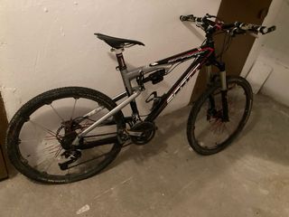 Bicicleta de montaña con doble suspensión Specialized. - Cuadro de aluminio. - Frenos de disco. - Ruedas de 29 pulgadas. -Suspensiones Fox -Ruedas Carbono -Cuadro Carbono