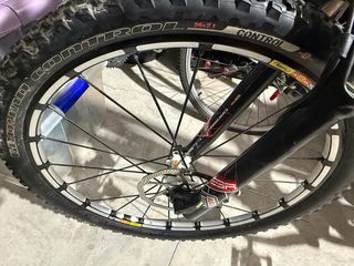 Bicicleta de montaña Kona en buen estado. Cuadro Kona Kula Primo, pintado en negro. Horquilla Cannondale Fatty. Manillar titanio EDR Tija titanio Manetas de freno TTP Frenos mecánicos Avid bb7 Grupo Shimano Deore/ DeoreXT Cubiertas SCHWALBE BIG BEN Busco Brompton o Flamingo