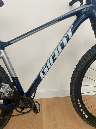Bicicleta de montaña Giant con cuadro de aluminio ALUXX SL. -Asiento extra de regalo - Aro de 29 pulgadas. - Diseño moderno y resistente. Marco: ALUXX SL-Grade Aluminum, 12x148mm thru-axle Horquilla: Giant Crest 34 SL RCL, 130mm, 44mm offset, Boost 15x110 Transmisión: SRAM SX Eagle, 1x12 Frenos: Shimano BR-MT420/410, hydraulic, Shimano Aros: Giant AM 29, tubeless ready sleeve-joint rim, 30mm inner width Llantas: Maxxis Minion DHF, 29x2.5 WT (PERMUTO X BICICLETA ELECTRICA 100% OPERATIVA )