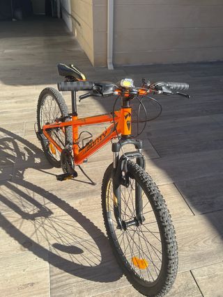 Bicicleta de montaña en color naranja, ideal para jóvenes ciclistas. - Ruedas de 24 pulgadas. - Cuadro de aluminio. - Frenos de disco. - Suspensión delantera.