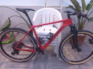 Bicicleta de montaña Berria Bravo con cuadro de carbono. Talla L color rojo - En perfecto estado, muy cuidada. - Horquilla de aire ROCK SHOX Judy 100mm con bloqueo remoto en el manillar. - Transmisión completa SRAM SX 1*12 - Frenos de disco hidráulicos SRAM LEVEL - Ruedas 29" Shimano, con cubiertas Vittoria BARZO 2.25 tubelizadas.