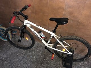 Bicicleta B-Twin Rockrider 300 en color blanco. - Cuadro de aluminio. - Ruedas de 20 pulgadas. - Frenos V-brake. - Sillín ajustable. - Pedales reflectantes.