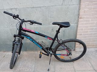 Bicicleta B-Twin Rockrider 340 en buen estado. - Hard Tail. - Cuadro de aluminio. - Suspensión delantera. - Frenos V-Brake. - Ruedas de 24 pulgadas. - Negra y detalles en azul