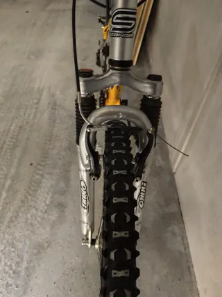 Bici de montaña de 26" y 30 velocidades (3 platos 10 piñones) Cuadro de aluminio Orquilla (suspensión) delantera rock shox sid Grupo completo sram x9 Frenos fórmula rx Ruedas crossride Pedales semiautomáticos Regalo ruedas de carretera y cubierta para sillín.