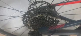Bicicleta de montaña Rockrider 900S con cuadro de carbono. - Diseño de doble suspensión. - Ruedas de carbono Speedsix Rokka - Horquilla Rock Shox Reba 120mm - Amortiguador Manitou Radium 120mm - Frenos de disco Shimano XT (prácticamente nuevos). - Cambio inalámbrico Sram Gx AXS (10-52) - Plato de 34 dientes - Tija telescópica Cannondale 140 de recorrido. - Cubiertas Vittoria Barzo 2.35 (delantera) y Mezcal 2.25 (trasera) con muy poco uso.