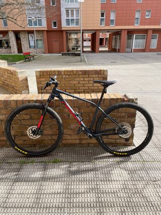 Bicicleta de montaña Trek Fuel EX 8 en color negro y rojo. - Cuadro de aluminio. - Suspensión delantera y trasera. - Frenos de disco hidráulicos. - Ruedas Maxxis. - O cambio con trek procaliber 6,7,8,9 rígida talla ml de aluminio