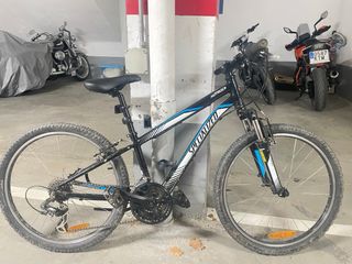 Bicicleta Specialized Hotrock en talla S grande, con ruedas de 26 pulgadas. - Cuadro de aluminio. - Suspensión delantera. - Frenos de disco. - Cambio Shimano.