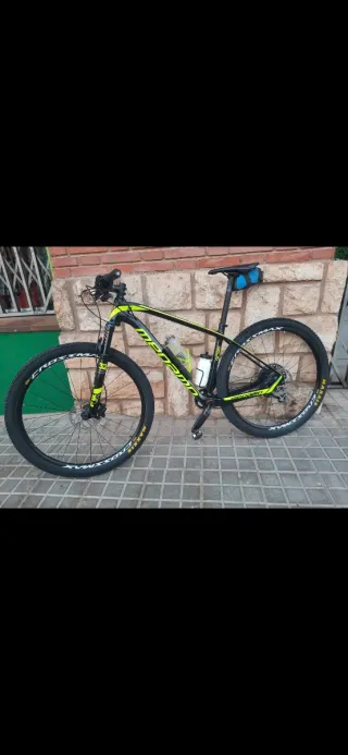 Bicicleta de montaña en color negro. - Cuadro de aluminio XL - Frenos de disco. - Suspensión delantera Rockshocks con bloqueo y regulable - Sillín Sellé Italia de gel - Tija de sillín Telescópica con mando en volante - Volante Trifox de carbono. - Llantas Mavic Crossmax 29' - Neumaticos Hutchinson - Cambio Sraam GX eagle 12v - Pedalier Sraam GX - Pedales doble uso anclaje y pedal normal Muchos extras más traje chaqueta botas bomba de aire para neumáticos y otra para suspensión.etc. cualquier duda preguntar. Es una bici montada a gusto propio mucho dinero metido en extras. Poco uso.Vendo por cambio de trabajo