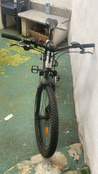 Bicicleta de montaña Rockrider ST530 Talla XL - Cuadro de aluminio. - Ruedas de 27.5" - Frenos de disco. - Suspensión delantera. Extras incluidos: - Cuernos laterales manillar - Luz delantera - Luz trasera - Portabidones - Timbre IMPORTANTE LEER: La rueda trasera (llanta) necesita ser cambiada.