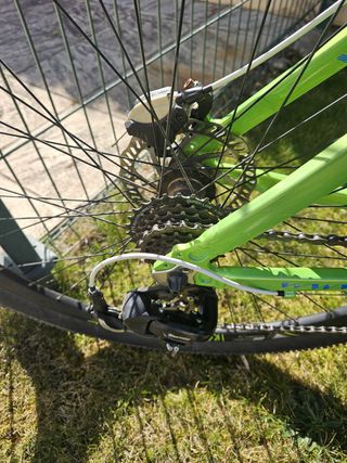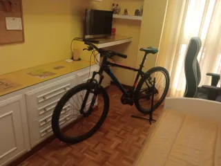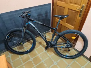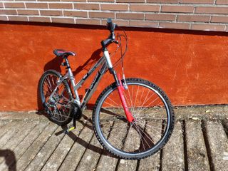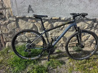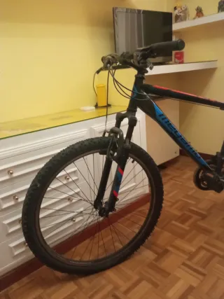 Bicicleta de montaña con ruedas de 27'5 pulgadas y talla XL. Ideal para disfrutar de rutas y senderos. Tiene solo 4 salidas. Nueva costó 360€. Solo se vende la bici (sin accesorios). - Cuadro de aluminio. - Suspensión delantera. - Frenos de disco. - Cambio Shimano.