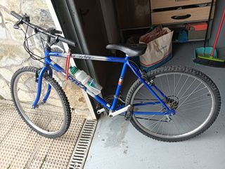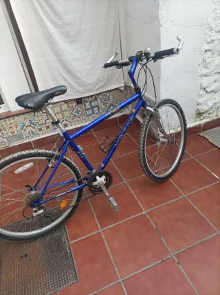 Bicicleta de montaña de 24 pulgadas en color azul. - Cuadro de aluminio. - Suspensión delantera. - Cambio y frenos Shimano. Tiene una pequeña raja en la goma de los puños. Está en muy buen estado