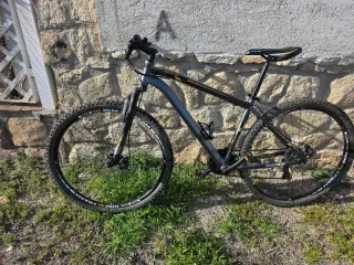 Bicicleta de montaña con ruedas de 29 pulgadas y talla 48. - Cuadro de aluminio. - Neumaticos antipinchazo. - Frenos de disco. - Suspensión delantera. - 21 velocidades.
