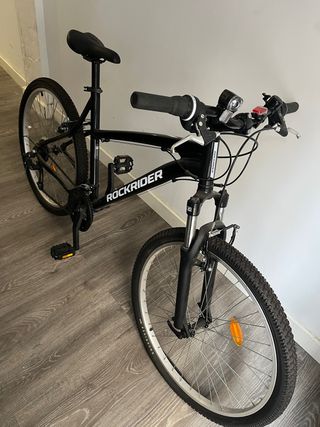 Bicicleta de montaña Rockrider en color negro. Ideal para iniciarse en el ciclismo. Las ruedas las he cambiado hace 1 mes La vendo porque ya no la uso y me ocupa espacio - Cuadro de aluminio. - Suspensión delantera. - Frenos de disco. Escucho ofertas