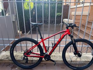 Bicicleta de montaña Scott Scale 960 en color rojo/naranja. - Cuadro de aluminio en talla L. - Ruedas de 29 pulgadas. - Frenos de disco hidráulicos. - Transmisión Shimano. La bici está en excelente estado excepto porque tiene algún picotazo en la pintura, daño estético pero de mecánica está perfecta, se vende porque no se usa. Se puede ver y probar en Albacete capital. se vende porque el precio que cuesta la bici solo, aparte de que lleva neumáticos MAXXIS y cierres de seguridad como extras valorados en 100€ fácilmente. Se pueden mandar más fotos si se necesitan.
