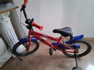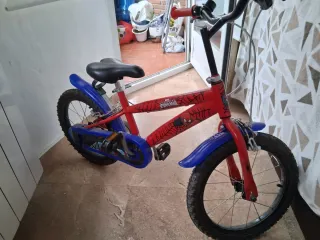 Bicicleta infantil con diseño de Spiderman, ideal para los más pequeños. - Cuadro de color rojo con detalles de Spiderman. - Guardabarros delanteros y traseros de color azul. - Ruedas de 16 pulgadas.