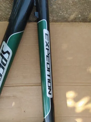 Cuadro de bicicleta Specialized Expedition. Talla S...algunas marcas de uso,sin golpes ni fisuras...el eje no gira, hay que hacerle mantenimiento... - Color negro con detalles en verde. - Diseño Expedition.