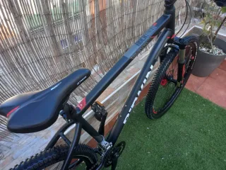 Bicicleta de montaña con ruedas de 27.5 pulgadas. - Cuadro de aluminio. - Frenos de disco hidráulicos - Suspensión delantera con bloqueo - Monoplato de 9 velocidades - Cambio shimano -Talla L
